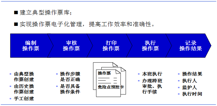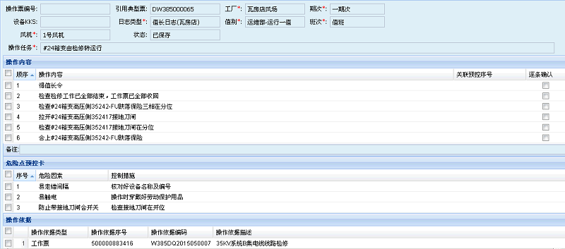 操作票和操作命令票是保證人員和設(shè)備的安全,防止發(fā)生人身事故和誤操作事故的重要保障。在系統(tǒng)中結(jié)構(gòu)化定義操作票和操作命令票的執(zhí)行程序,控制操作執(zhí)行過程和結(jié)果,能夠有效防止習(xí)慣性違章,防止發(fā)生人身及設(shè)備事故,防止誤操作發(fā)生。操作票主要針對(duì)操作量大,操作內(nèi)容復(fù)雜的工作。操作命令票針對(duì)操作量小,操作內(nèi)容簡(jiǎn)單的工作。