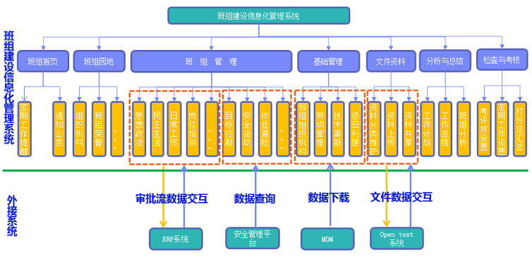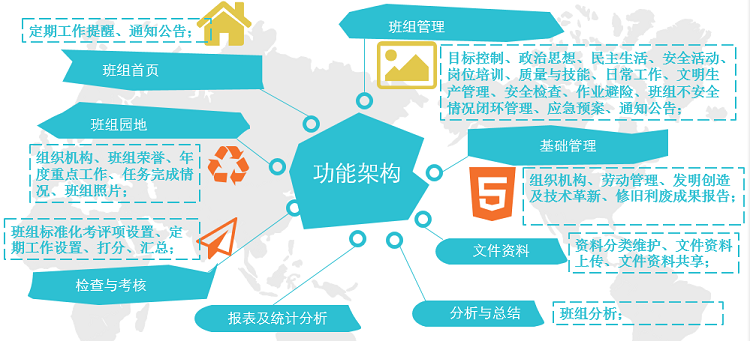 該系統(tǒng)以提升電廠班組管理水平為核心,以班組管理辦法、信息化建設(shè)為依托,逐步形成統(tǒng)一的管理標(biāo)準(zhǔn)、流程標(biāo)準(zhǔn)、數(shù)據(jù)標(biāo)準(zhǔn)、接口標(biāo)準(zhǔn)。