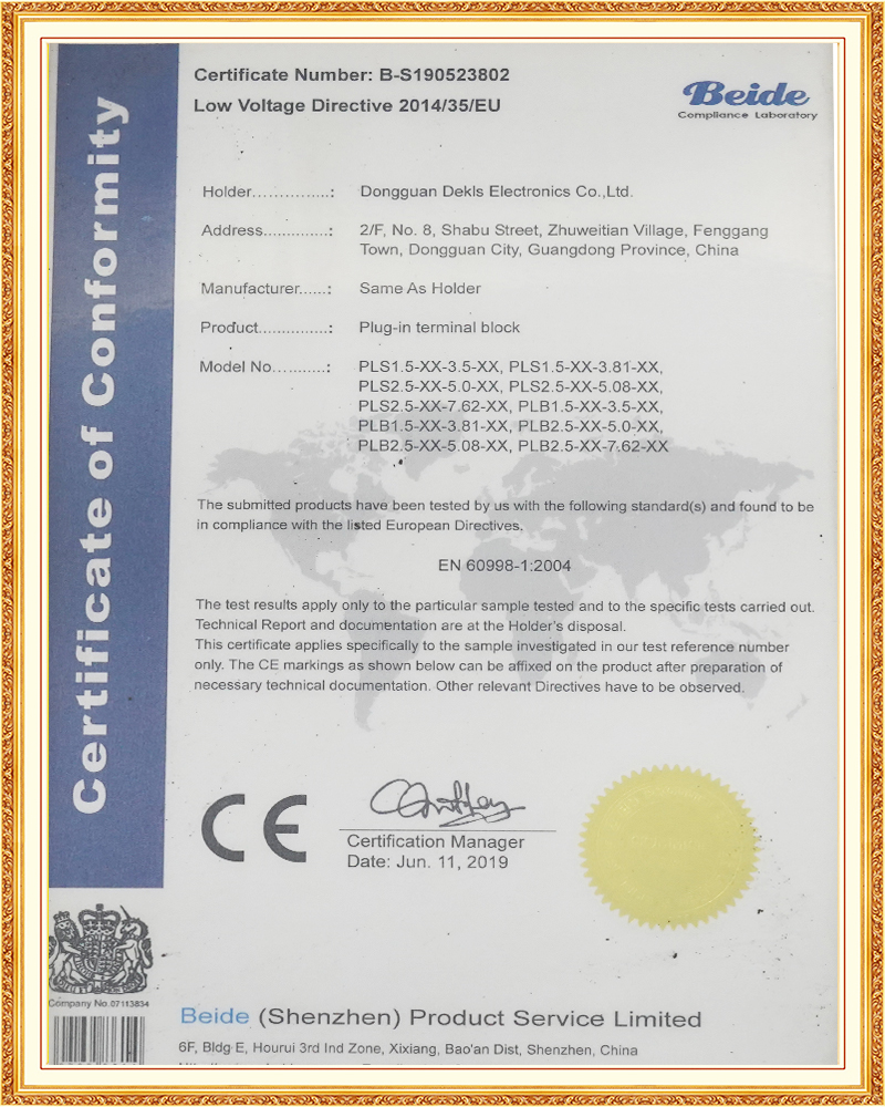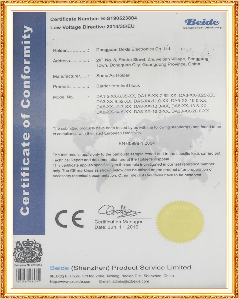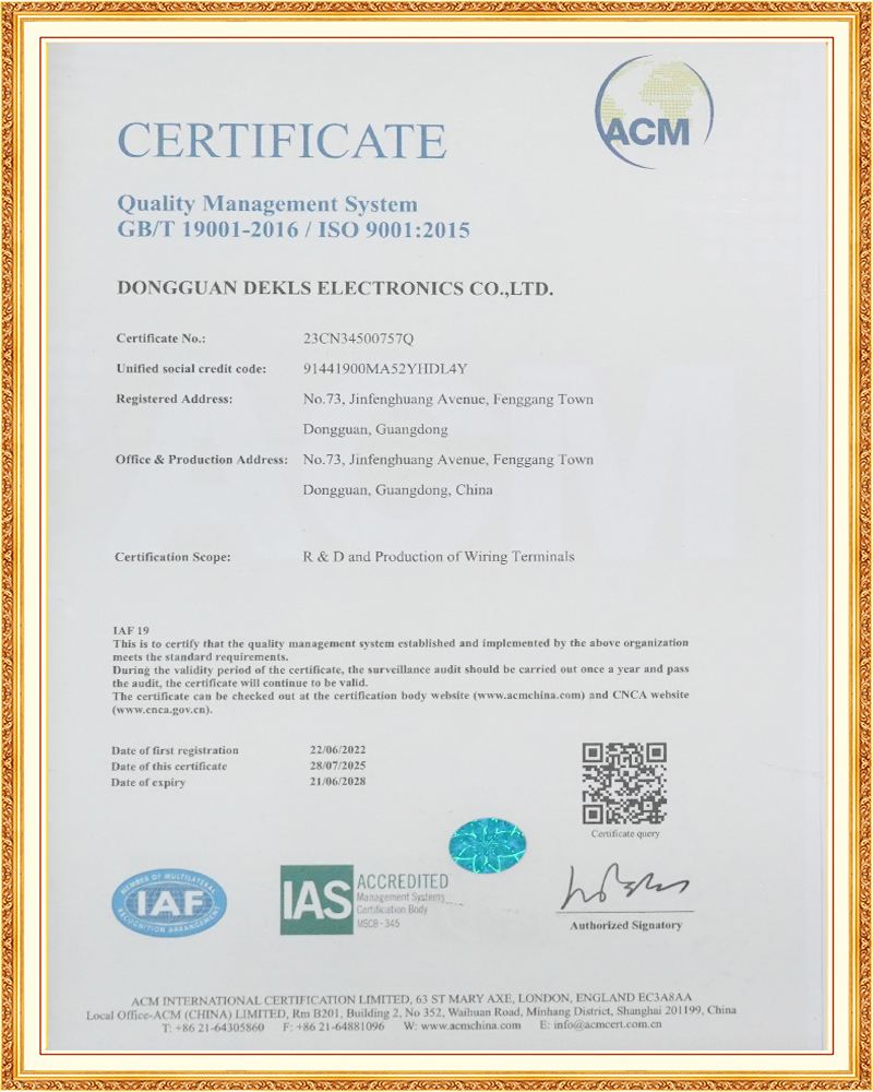公司通過了ISO 9001:2015、ISO14001:2004質(zhì)量和環(huán)境管理體系認(rèn)證,并進(jìn)行科學(xué)的內(nèi)部流程優(yōu)化及品質(zhì)管控。產(chǎn)品具有UL、CUL、CE、VDE、CQC等安規(guī)認(rèn)證,符合ROHS歐盟環(huán)保標(biāo)準(zhǔn)。公司能獨(dú)立完成產(chǎn)品研發(fā)設(shè)計(jì)、模具制造、部件沖壓注塑、產(chǎn)品組裝,并配備先進(jìn)的測(cè)量檢驗(yàn)設(shè)備。以此為基礎(chǔ),公司也為客戶設(shè)計(jì)研發(fā)、量身定做,先后為眾多知名企業(yè)提供安全可靠的.電氣連接設(shè)計(jì)方案,滿足客戶個(gè)性化設(shè)計(jì)和新產(chǎn)品的研發(fā)需求。