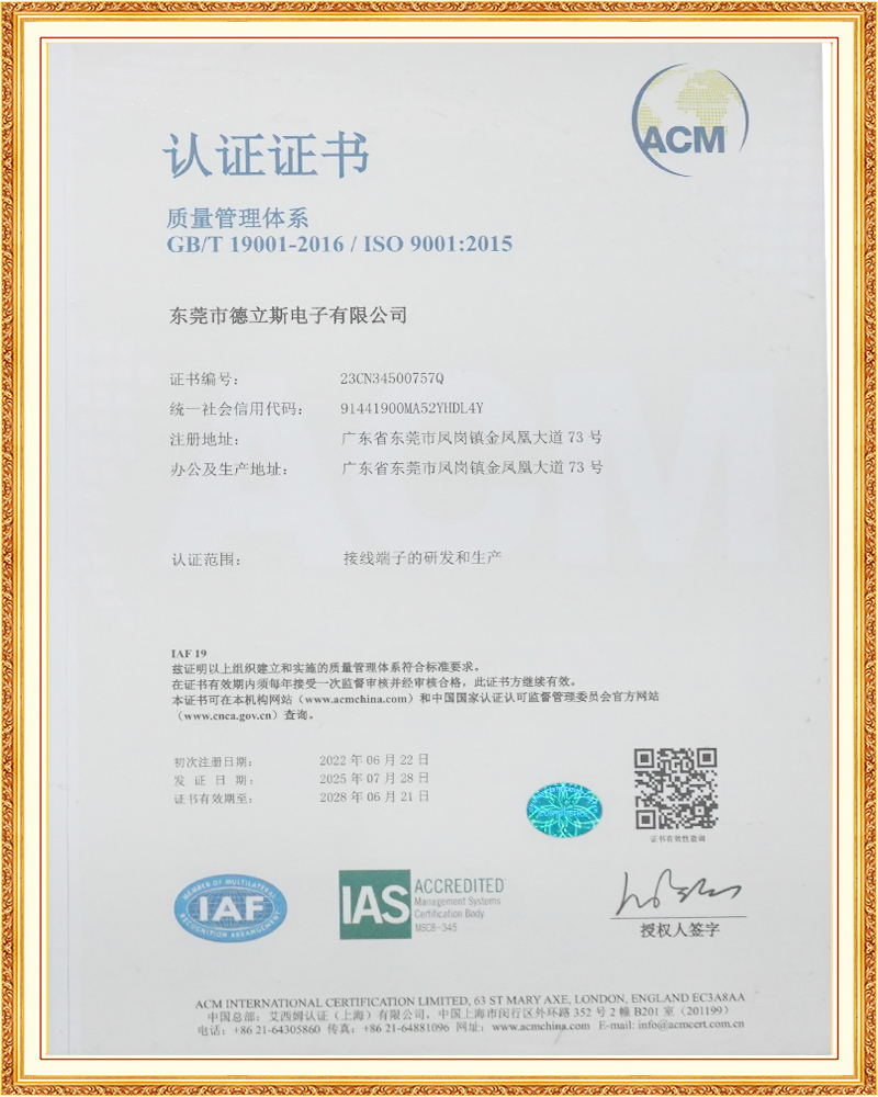東莞市德立斯電子有限公司是集新產(chǎn)品研究開發(fā)、規(guī)?;a(chǎn)制造、滿足客戶需求及服務(wù)為一體的接線端子專業(yè)制造廠家。公司位于東莞,現(xiàn)有員工200余人,公司產(chǎn)品主要分為PCB焊接端子、彈簧式接線端子、模塊端子、柵欄式接線端子、穿墻式連接器端子、光伏儲(chǔ)能連接器端子、貫通式接線端子和功率及導(dǎo)軌式接線端子等近千余種規(guī)格,廣泛應(yīng)用于伺服控制、變頻節(jié)能、開關(guān)電源、安防照明、電力、工業(yè)自動(dòng)化等諸多領(lǐng)域。